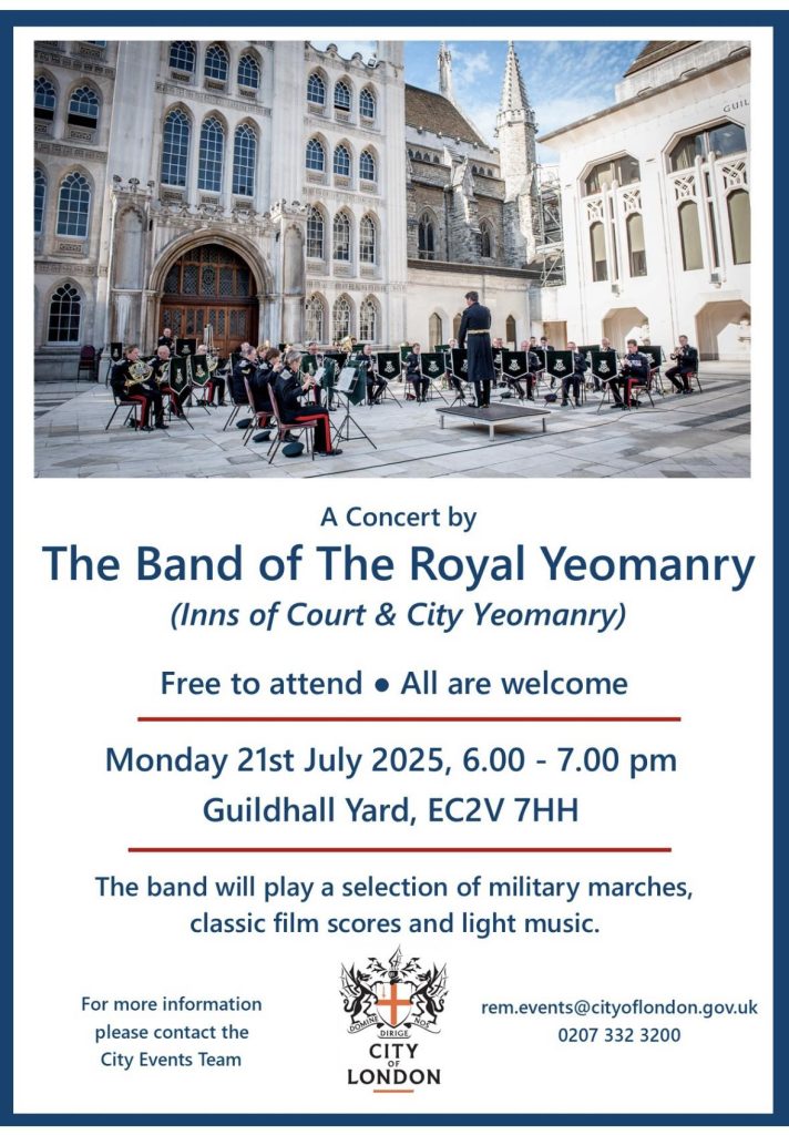 This evening, I was delighted to be amongst those who attended the annual concert by the The Band of The Royal Yeomanry (Inns of Court & City Yeomanry) in Guildhall Yard.