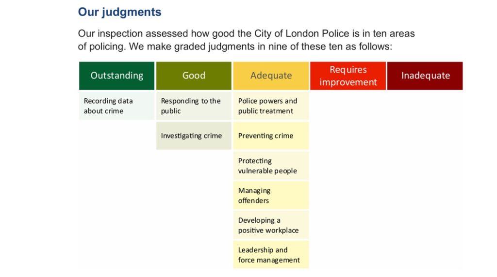 The City of London Police has been graded ‘outstanding’ for how it records crime, as well as ‘good’ for both investigating crime, and responding to the public.