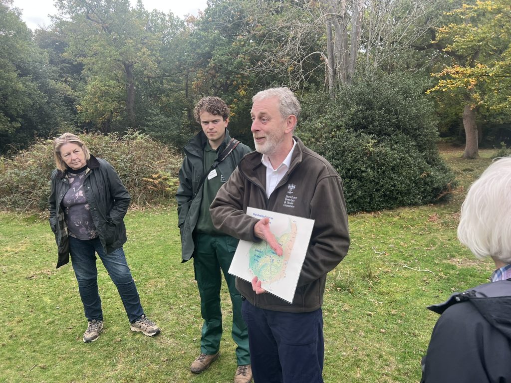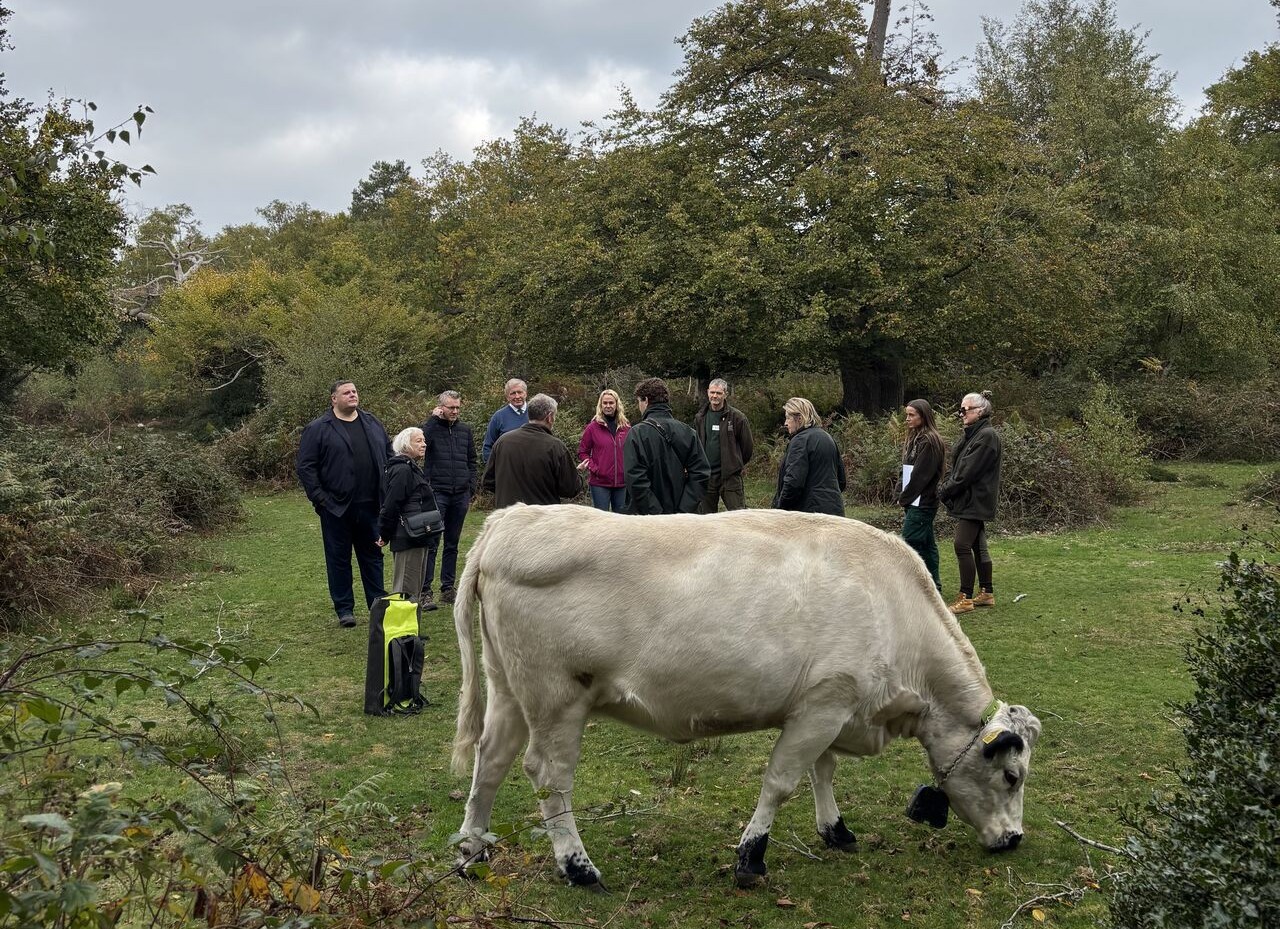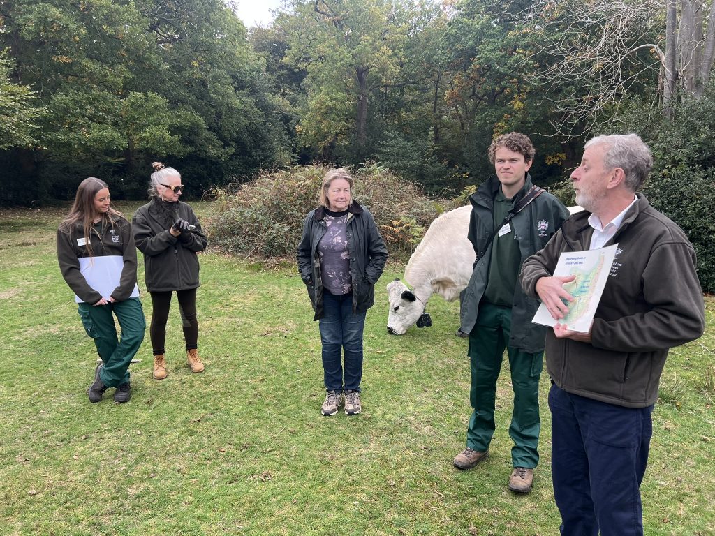 As we were talking, we welcomed a visit by one of our beautiful British White cattle who I think was particularly interested in the discussions about the potential to re-introduce Berkshire pigs in the autumn to eat the acorns and beech mast. Our four-legged conservation colleagues are also ably supported by Exmoor ponies on Stoke Common and Sussex cattle graze the heathland. It’s a team effort!