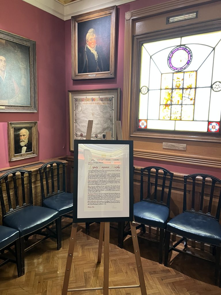 The Chair then paid a very generous tribute to me, as the retiring Chairman of the Committee, saying, “Ben’s leadership over the past three years has been transformative and as Deputy Chair for most of that time I have learned much and witnessed his huge commitment and dedication to Epping Forest and the wider Commons. It seemed fitting in such a historic venue to invite our senior Verderer – an office instituted in the early 13th Century – to deliver our Vote of Thanks to Ben by reading the Declaration endorsed by the Committee at the end of his term in May 2024.”