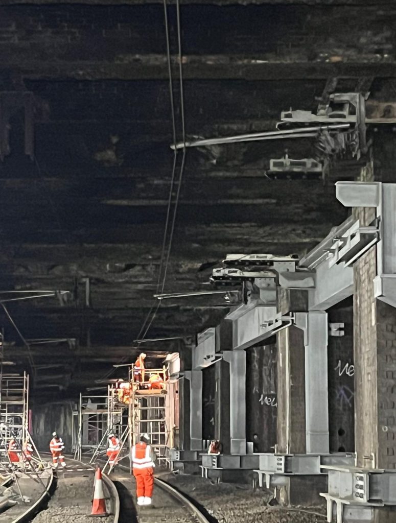 • Strengthening work taking place inside the Bishopsgate Tunnel approaches to London Liverpool Street.