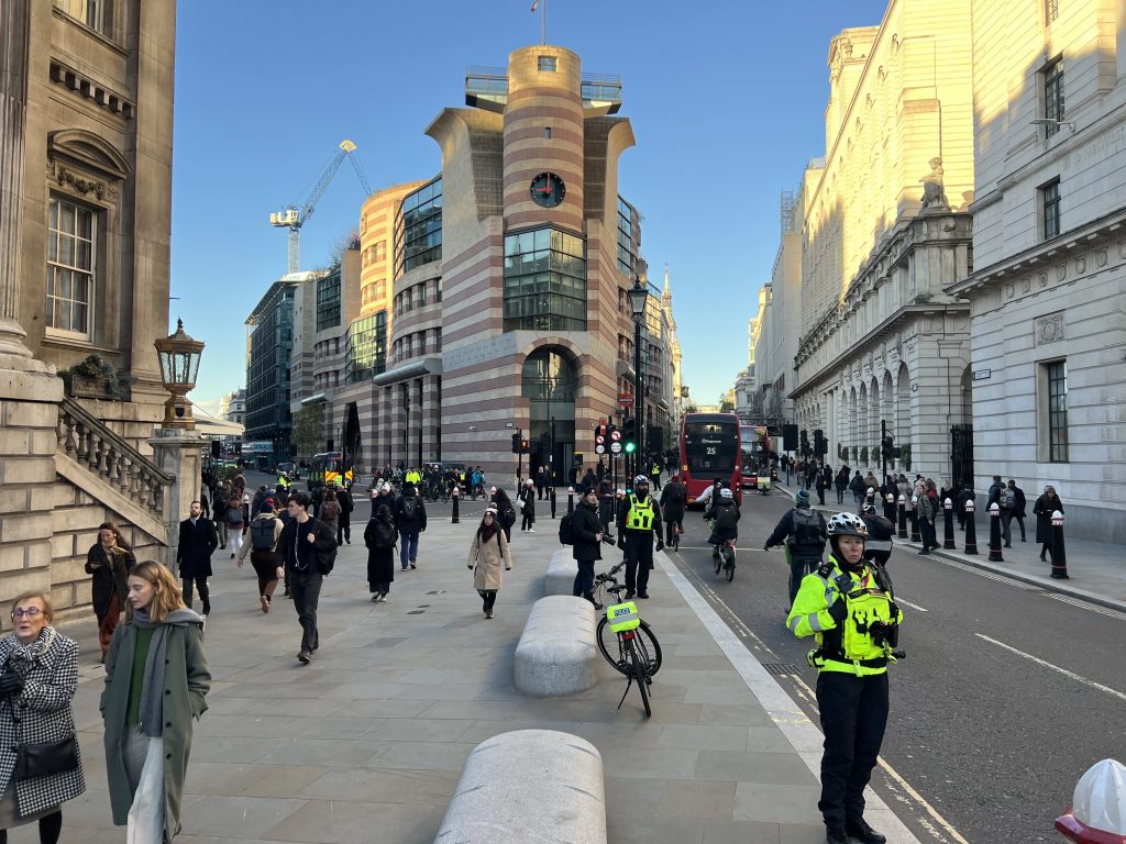 Pleased to join the City of London Police’s Road Safety Engagement Event at an extraordinarily busy Bank Junction this morning, to see first hand how the Police are addressing unlawful behaviour by riders and drivers, while providing educational outreach to everyone walking, cycling, or driving within the Square Mile.