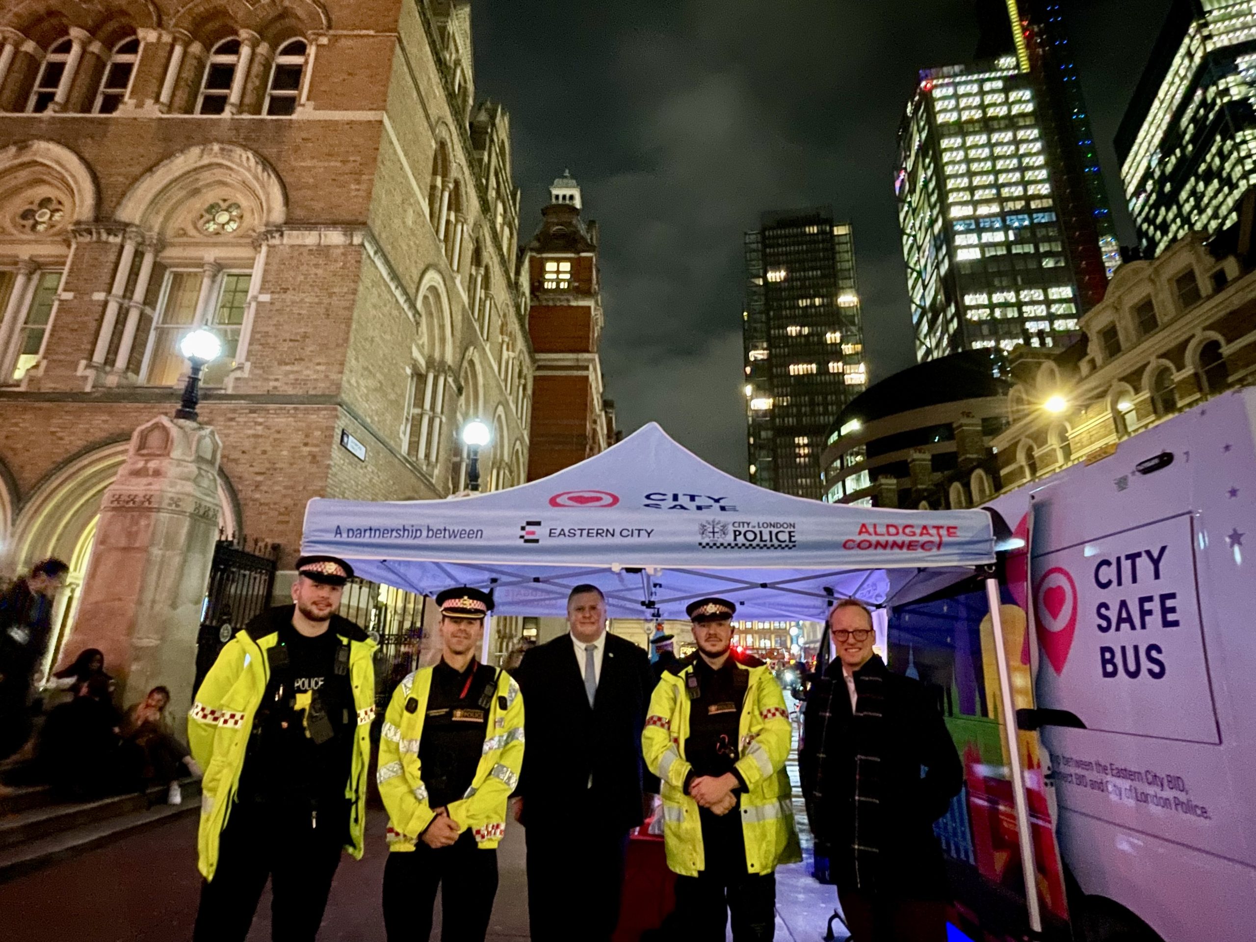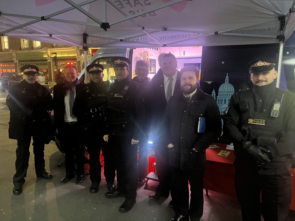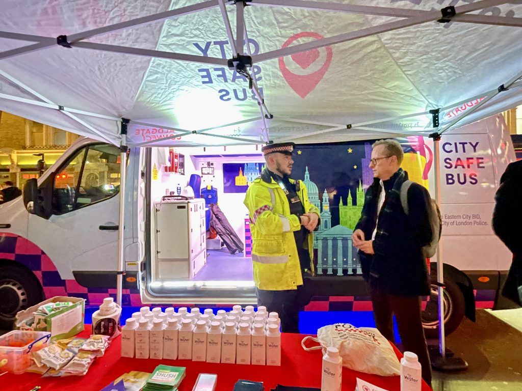 This initiative is a partnership between the City of London Police, Eastern City BID and Aldgate Connect BIDs, combining policing and local business leadership to make the night-time economy safer and more welcoming over the celebratory festive season.